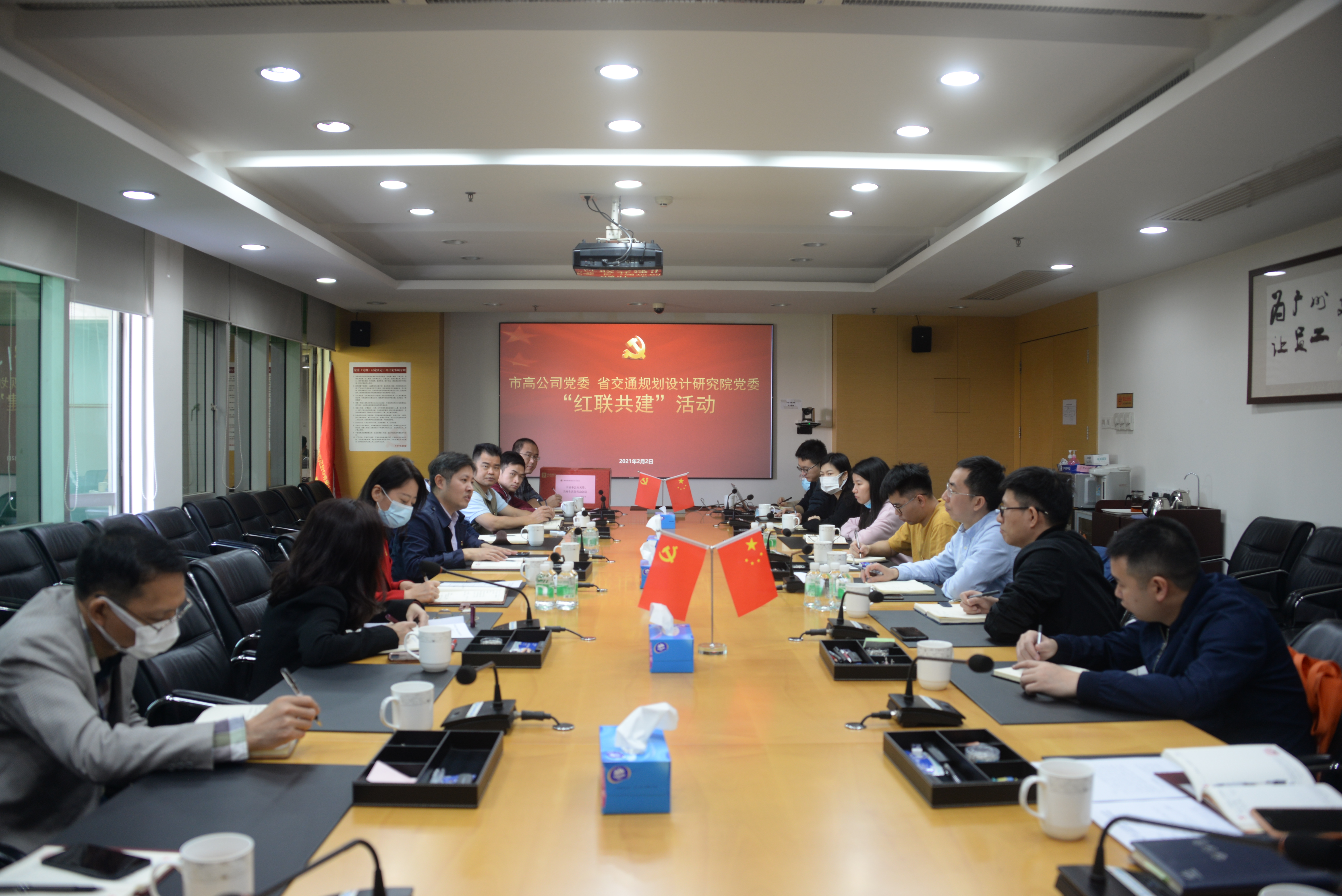 2月2日上午,我公司与增天高速项目业主单位广州市高速公路有限公司联合开展了“红联共建”活动暨增天高速项目节前座谈会。市高公司党委副书记、工会主席刘媛媛,增天高速项目管理处总经理卢辉,党建工作部、项目管理处成员以及我公司第五党支部书记、第五设计分院副院长陈星光和支部党员代表参加了本次座谈会。