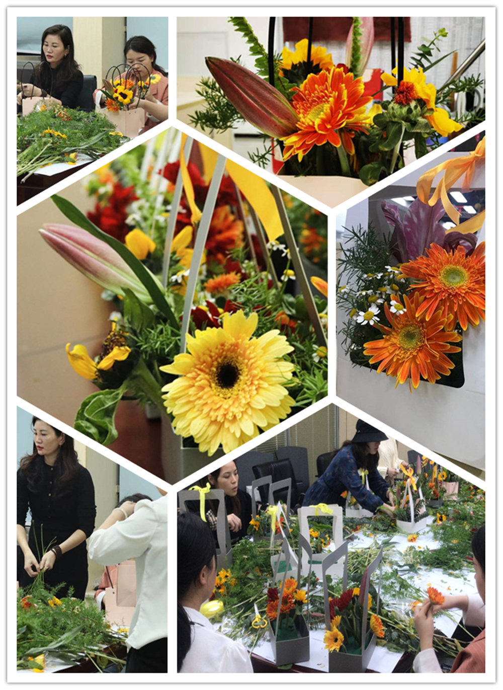 阳春三月,草长莺飞。节日当天,各式各样的鲜花和节日祝福贺卡纷纷飞到女神手中,满是深深的祝福,祝福女神们身体健康、青春永驻。书画摄影协会也趁着节日来临之际,组织了插花活动,为女神们准备了象征着年轻、美丽、热爱的向日葵、百合、菊花、鸡蛋花等多种鲜花,传递着对女职工的美好祝福。