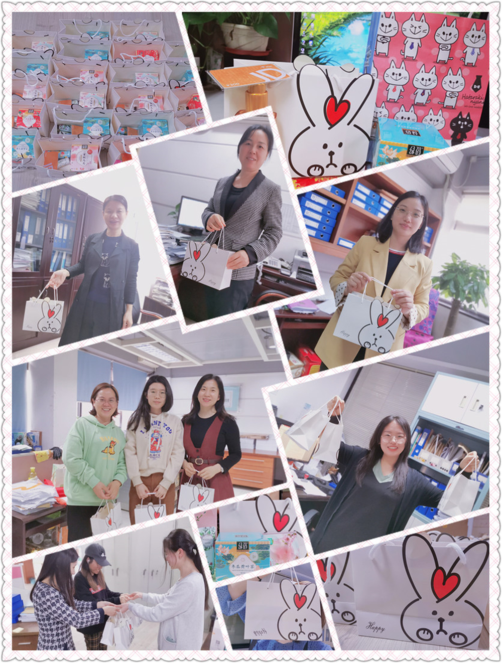 除了鲜花花和贺卡送祝福之外,还有些工会小组采用别样的方式,传递祝福,传递友谊。工会小组为女同事们精心挑选,用心准备了一份份温暖熨帖的礼物,并精心包装,包裹着浓浓的祝福送给大家,增添了欢乐的节日气氛,传递了温暖的友谊。