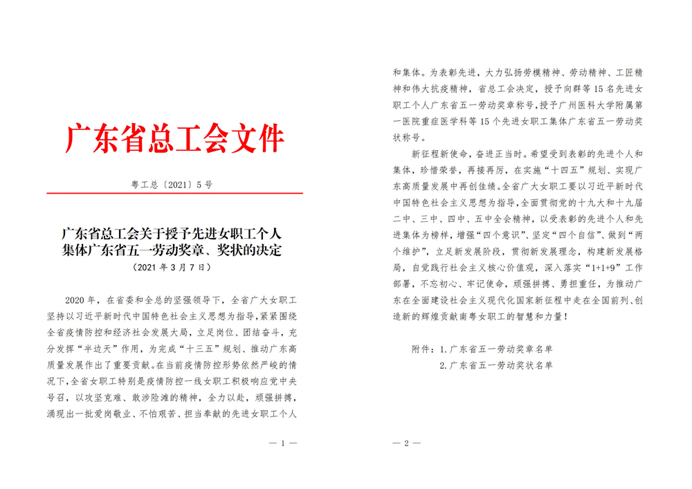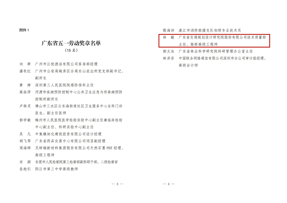 近日,为纪念“三八”国际劳动妇女节111周年,充分展示南粤女职工风采和女性魅力,激励广大女职工以昂扬向上的精神面貌奋进新时代,广东省总工会开展了先进女职工个人、集体评选活动,我公司技术质量部主任林敏喜获广东省总工会授予“广东省五一劳动奖章”荣誉称号,此次全省共有15名女职工获得此项殊荣。省总工会号召广大女职工向先进标杆学习,大力弘扬劳模精神、劳动精神和工匠精神,为国家奋进新征程、建功新时代贡献南粤女职工的智慧和力量。