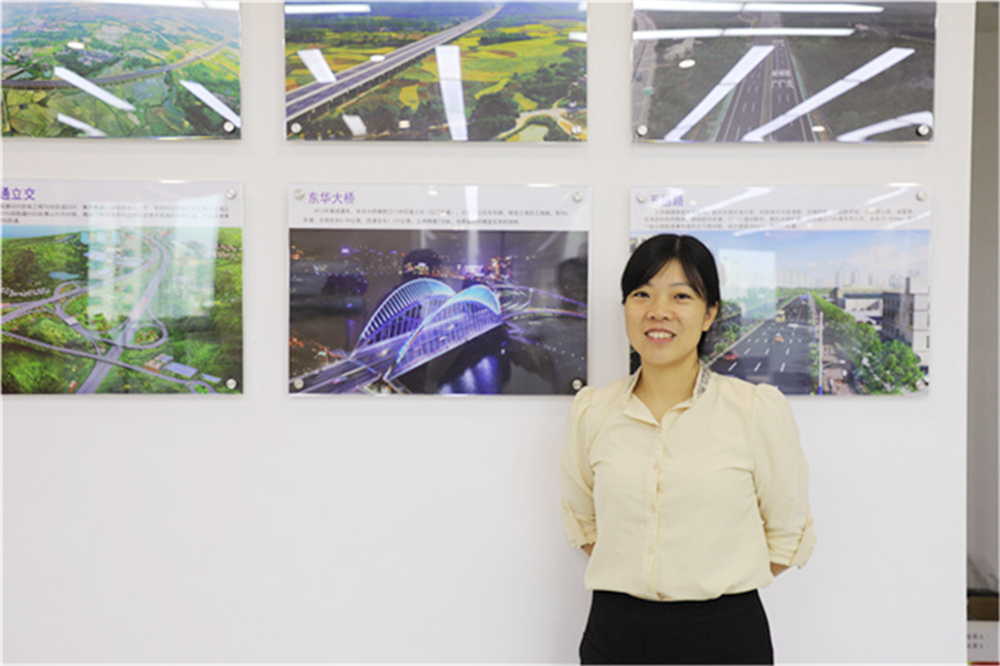在工程项目中,她精心设计、开拓创新,巾帼不让须眉,打造了一个又一个的精品工程,作为桥梁项目负责人主要承担了广梧高速公路河口至双凤段桥梁分项施工图设计、中山东部外环高速公路一期工程初步设计横门特大桥(主桥880m双塔双索面双层钢桁架斜拉桥)、中山大南沙特大桥(主桥90+200+90m双塔双索面斜拉桥)两阶段施工图设计等;作为主要技术成员参与了珠江三角洲经济区外环公路江门至肇庆高速公路西江特大桥、省道S272肇珠线江门市区复线东华大桥工程等项目。其中“广梧高速公路河口至平台段”获新中国成立70周年经典设计项目、全国公路交通优秀设计一等奖;“中山市中山港大桥改扩建工程”获全国优秀工程勘察设计二等奖、广东省优秀工程勘察设计二等奖等。