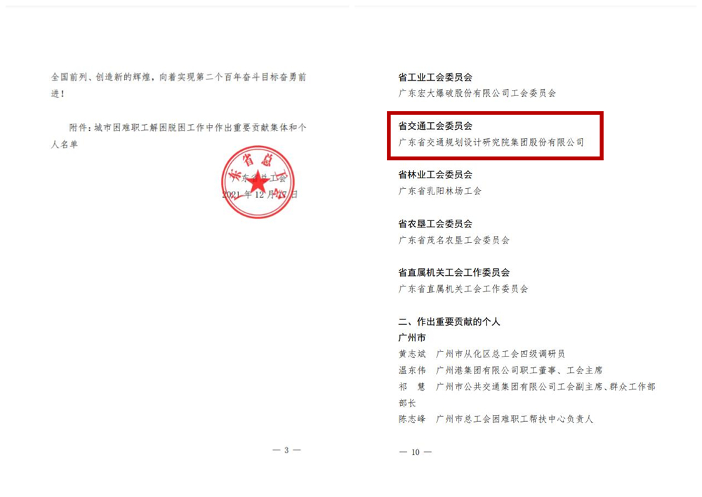 12月20日,广东省总工会以电视电话会议形式召开了全省城市困难职工解困脱困工作总结表彰会。会议总结了五年来全省各级工会推进城市困难职工解困脱困工作取得的重大成就,并表扬了一批在工作中真抓实干、无私奉献、攻坚克难、勇于创新的先进集体和个人。我公司被省总工会授予“在城市困难职工解困脱困工作中作出重要贡献集体”荣誉称号!