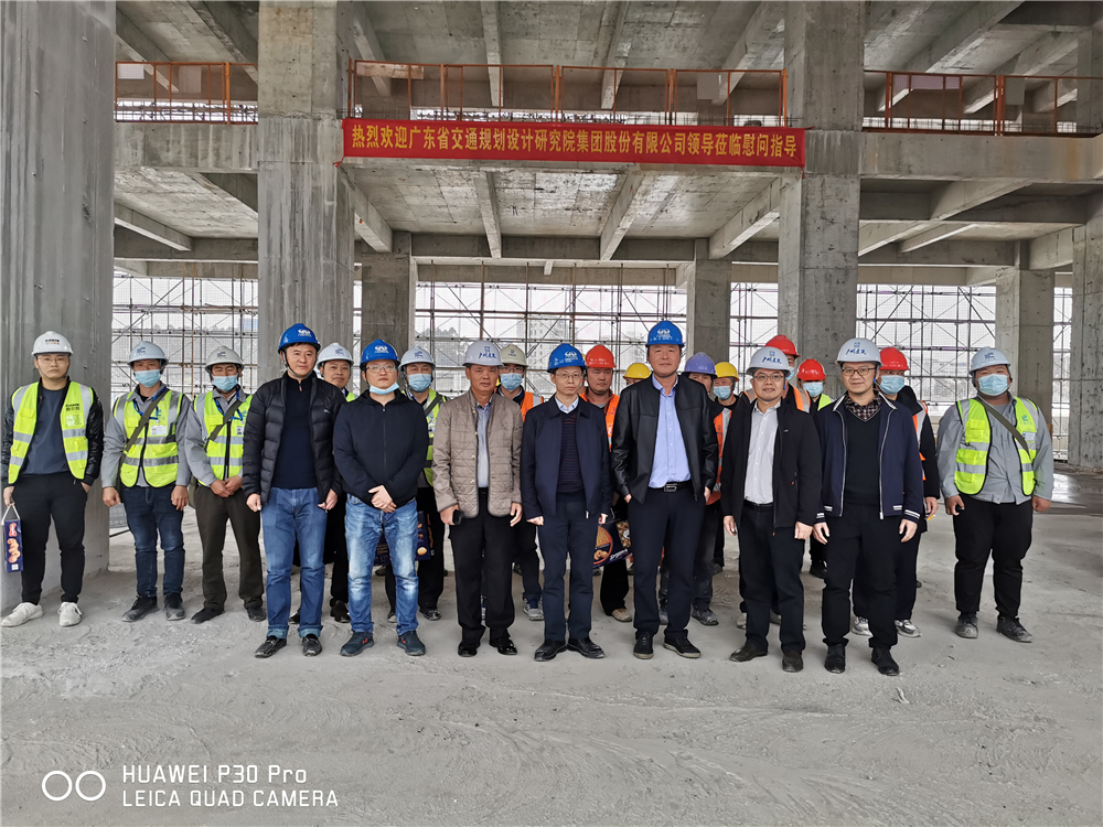 1月13日,公司党委书记、董事长李江山,党委副书记、副总经理、工会主席陈贤文前往公司新办公大楼——广东交通设计大厦项目建设现场开展新春慰问活动,为一线参建人员送去温暖关怀和春节祝福,并对项目建设进行了现场调研。