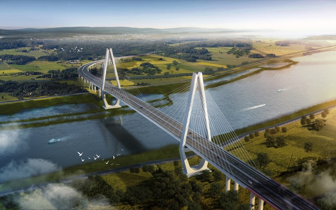 京灶大桥是汕头潮阳区连接揭阳空港经济区的重要跨江通道,主桥采用350m主跨钢-砼组合梁斜拉桥,主塔选型通过汕头市花(金凤花)和揭阳市花(莲花)花瓣的形态组合进行演变设计,寓意“路系潮汕,花开连城”。京灶大桥项目由我公司负责设计、翔飞公司负责监理。项目大部分桩基采用了低碳绿色的挤扩支盘桩基础,建成后有利于增强汕揭两市间经济联系紧密度,加快“汕潮揭同城化”发展。
