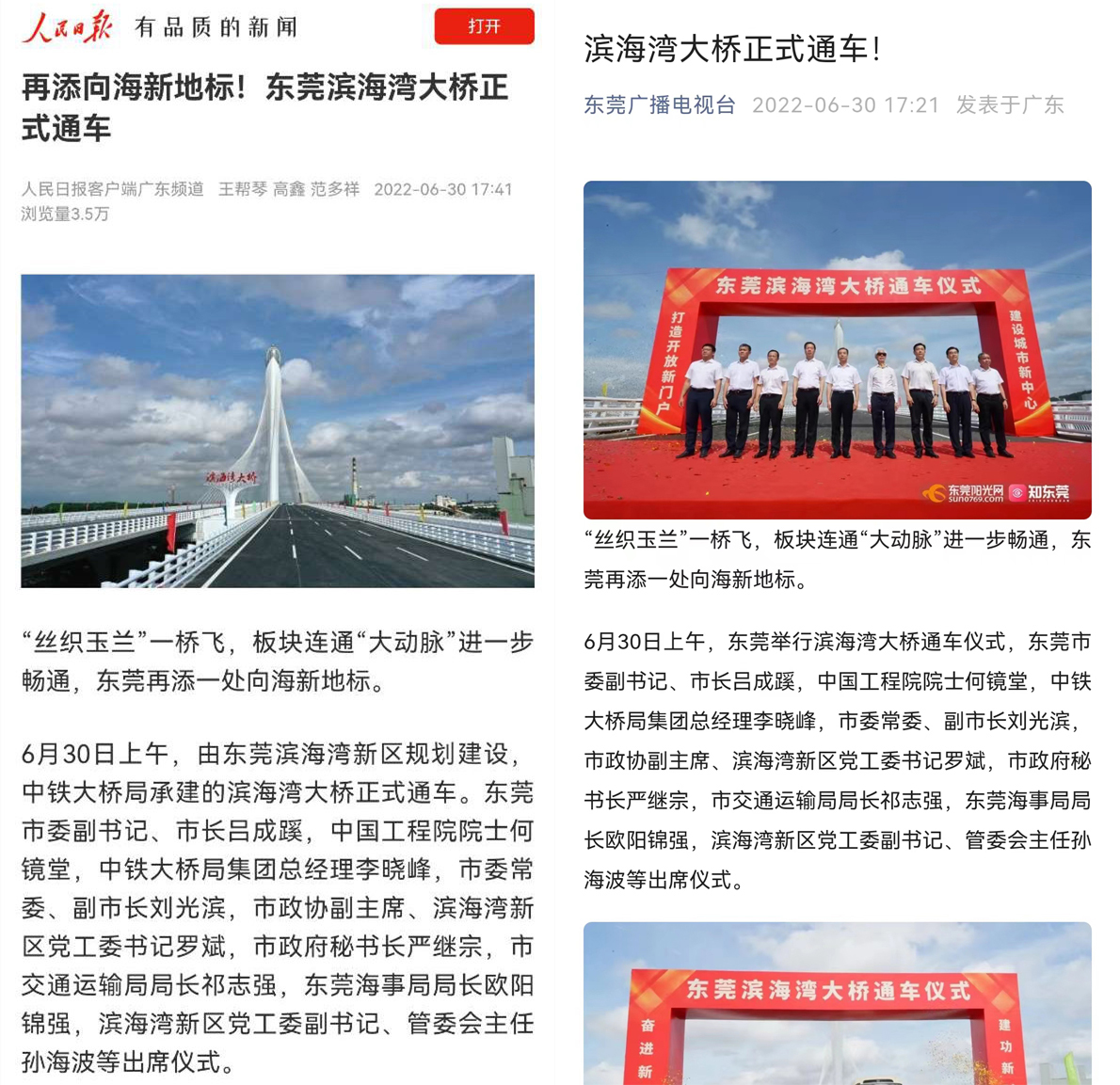 该桥的通车获得了各方的高度关注。中央及地方媒体均对此进行了报道。