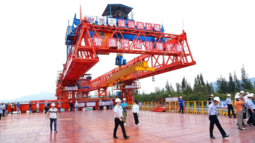 4月22日上午,与会代表们前往深汕西高速公路改扩建工程现场,参观了路基路面工程创新综合展示、桩梁一体化智能造桥机、桥梁预制构件智能制造生产线和单洞四车道山岭隧道全工序机械化施工等内容,进一步了解了项目建设重难点、技术创新和先进经验。