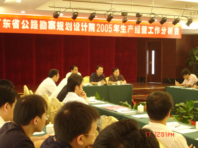 2005年9月16日至17日,院组织中层以上干部在佛山三水区国家森林公园召开了“2005年度生产经营工作分析会议”。李江山院长作主题报告,经营开发部、生产管理部、人力资源部、财务审计部负责人以及下属翔飞监理公司总经理先后作专题发言。大会客观地总结了上半年院在生产经营工作方面所取得的成绩,并对存在的问题进行了深入剖析。会间,各与会人员还紧紧围绕如何提升院的技术质量水平、生产经营效益和后续服务水平等方面,畅所欲言,纷纷发表自己的意见和建议,收到了很好的效果。
