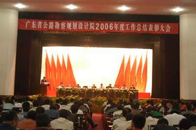 2007年3月16日,一年一度的广东省公路勘察规划设计院工作总结表彰大会在天虹宾馆隆重召开。广东省交通集团总工程师黄建跃、监事会主席叶桂光、集团工会副主席吴健祥等莅临大会指导。会议由黄湛军副院长主持。会上李江山院长作年度工作报告,石国彬董事长、党委书记宣布表彰决定,先进集体和先进个人代表发表获奖感言,最后集团领导讲话。