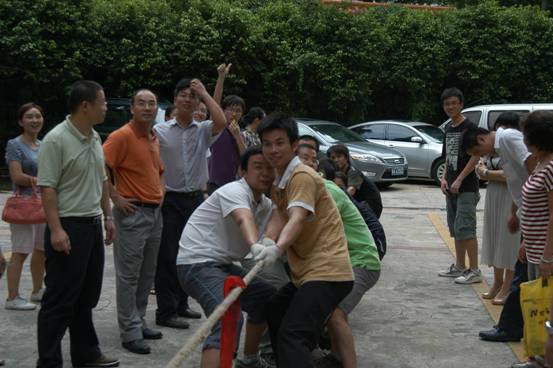 在公司领导和各部门、子(分)公司的大力支持下,在各工会小组的精心组织和全体员工的共同努力下,公司2010年度拔河比赛于8月23日下午圆满结束。经过数轮激烈的角逐,最终决出了冠、亚、季军。 冠 军:第八工会小组(后勤管理部) 亚 军:第二工会小组(第二路桥设计部) 季 军:第十工会小组(路桥分公司) 第十三工会小组(市政与交通工程部) 拔河比赛是公司的传统比赛项目,既是各参赛工会小组力量的比拼,更是他们团队精神的较量。通过比赛,促进了各工会小组之间的交流,增强了小组的团队凝聚力,也丰富了公司员工的业余生活。