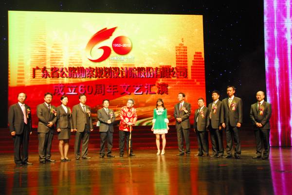 金秋十月,丹桂飘香。在这硕果累累的丰收季节,在这秋高气爽的美好日子里,庆祝我公司成立60周年大会于2012年10月12日在广州白云国际会议中心隆重举行,出席本次庆典大会的领导和嘉宾有:广东省交通运输厅党组书记、厅长曾兆庚,河源市委书记何忠友,省交通集团董事长、党委书记朱小灵,省交通集团总经理李静以及广东省交通运输厅、广东省交通集团有关领导、中国勘察设计协会、中国公路勘察设计协会、中国公路学会,省交通运输厅各处室、厅各直属单位、省内各地级市交通局、公路局、省交通集团各部门、省交通集团各直属单位、省内各业主单位、省内勘察设计兄弟单位、省内各行业协会、学会的领导以及院友嘉宾共计320余人。