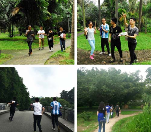 活动计时开始,各队根据分发的地图与任务卡在园区寻找预先设置好的打卡点,完成每个点设置的任务。活动以完成所有打卡点所用时间的长短计算成绩,时间越短排名越高。打卡点的设置范围相当广泛,各队队员需要选择合理的路线,制定高效的策略,以奔跑的方式尽可能快速寻找到打卡点,并以团队合作的方式完成打卡任务。活动富于趣味性、竞争性与活力性,考验队员们团队合作的能力、户外辨向的能力、选择策略的能力以及奔跑的体能。各队队员在活动过程中展现了省院员工的活力风采。