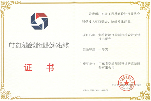 2018年广东省工程勘察设计行业协会科学技术奖: