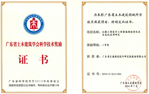 《公路工程设计工程量编制标准化及信息化应用研究》荣获二等奖,获奖人员:管培、苗德山、杜燕群、吴伟彬、王燕平、郭卫民、陈潮锐、苏卫国;