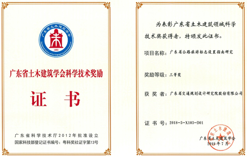 《广东省公路旅游标志设置指南研究》荣获三等奖,获奖人员:徐俊德、许蔚华、谢陈峰、杨振星、唐伟。